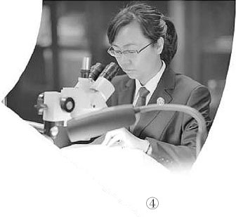 图③:检察技术人员对一起民事申诉案件所涉文件进行检验鉴定。